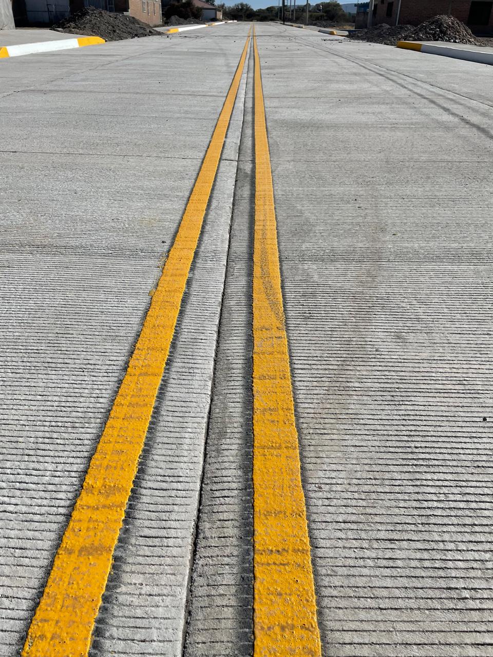 Pensando en la seguridad y comodidad de los peatones, se construyeron banquetas en ambos lados de la calle. Además, se realizó la pintura de guarniciones y la aplicación de pintura termoplástica divisoria de carriles, mejorando significativamente la señalización y la seguridad vial.