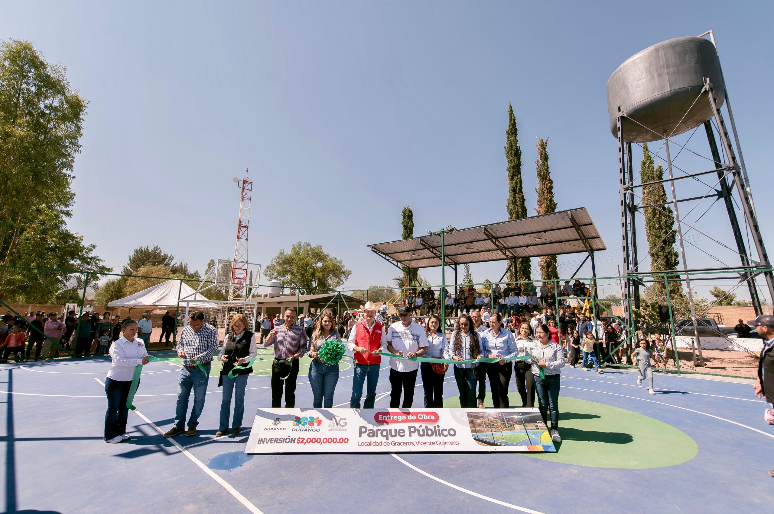 Con una inversión de 32 millones de pesos, el gobernador Esteban Villegas Villarreal inauguró en el municipio de Vicente Guerrero, obras deportivas, educativas, hidráulicas, rehabilitación de caminos, equipamiento policial y apoyos alimentarios gratuitos, además de arrancar la construcción del parque lineal, acciones que rescatan los espacios abandonados, fomentan la integración familiar como brindar mayor calidad en los servicios, seguridad y flujo en la economía de la región.
