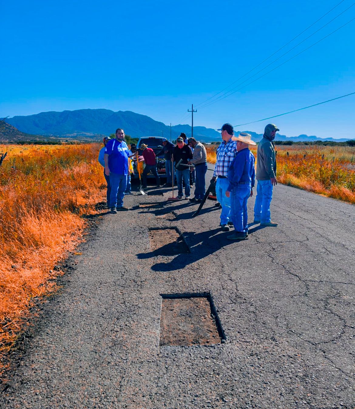 Durango, Dgo.- Como parte del compromiso de mejorar la conectividad y seguridad en la red carretera estatal, la Secretaría de Comunicaciones y Obras Públicas del Estado (SECOPE), a cargo de Ana Rosa Hernández Rentería, llevó a cabo una jornada de bacheo superficial en el Periférico de Nuevo Ideal, en una labor coordinada y de equipo con el gobierno municipal.